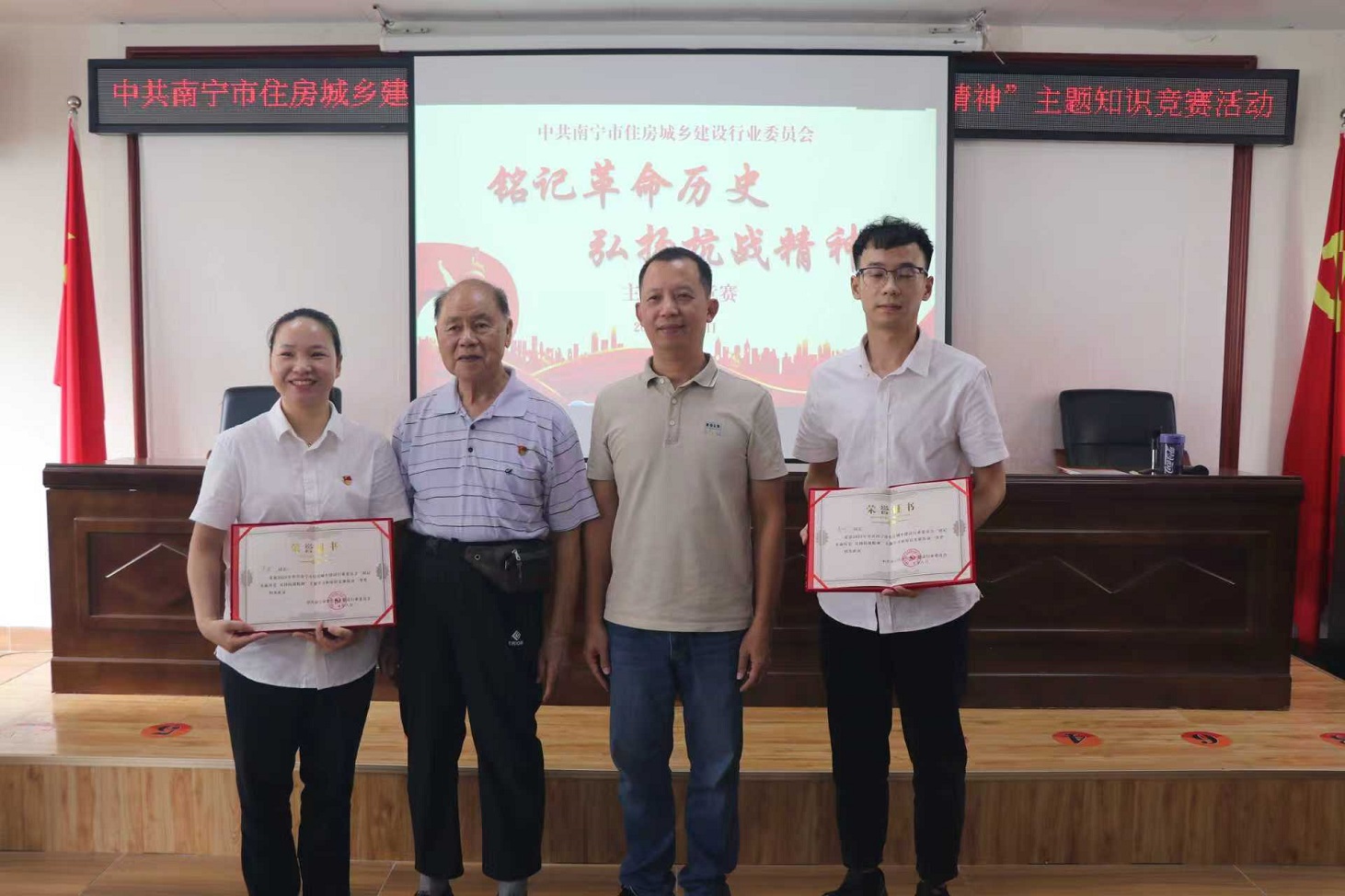 為紀(jì)念中國人民抗日戰(zhàn)爭暨世界反法西斯戰(zhàn)爭勝利80周年,深切緬懷革命先烈,大力弘揚偉大抗戰(zhàn)精神和愛國主義傳統(tǒng),市住建行業(yè)黨委嚴(yán)格遵照黨中央要求,于2025年8月28日上午在黨員活動中心舉辦“銘記革命歷史 弘揚抗戰(zhàn)精神”主題知識競賽活動。我公司黨支部派優(yōu)秀黨員盧波和入黨積極分子肖欣積極參加活動。