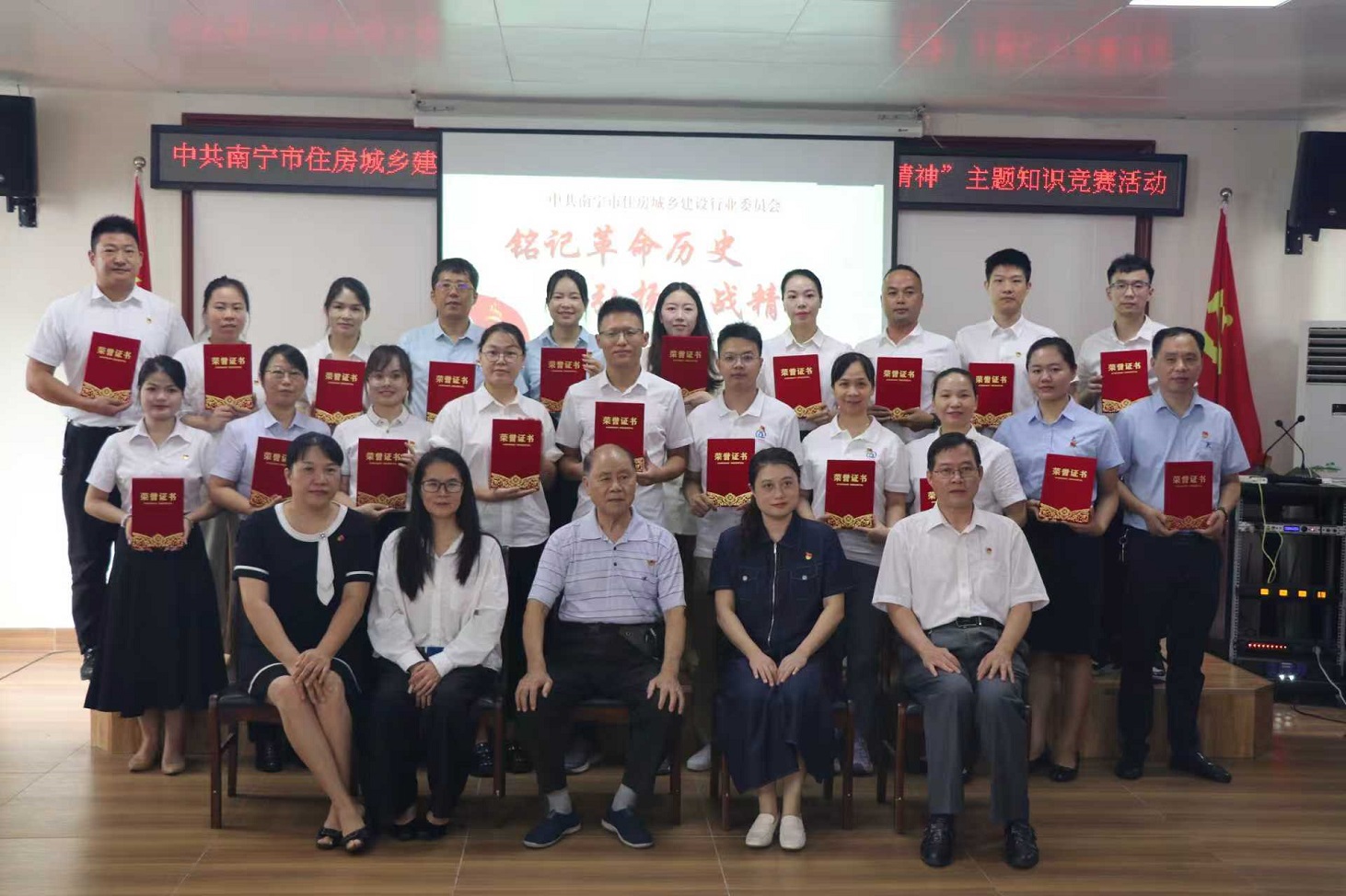 本次比賽分為必答題、輪答題和搶答題三個環(huán)節(jié)。我公司黨支部優(yōu)秀黨員盧波和肖欣同志在必答題和輪答題環(huán)節(jié)中對答如流,展現(xiàn)扎實知識基礎(chǔ),得到160分基礎(chǔ)分。在搶答題環(huán)節(jié)中,兩位隊員密切配合,多次搶到答題機會,并一字不漏完美地回答,賽出風(fēng)格,賽出水平。最后,南寧品正公司代表隊在激烈的角逐中以240分的好成績榮獲一等獎,展現(xiàn)了公司黨支部黨員的強大實力。