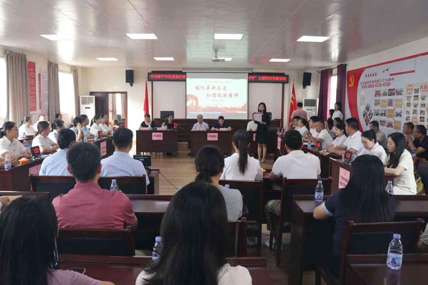 本次知識競賽,意在引導(dǎo)全體黨員深入學(xué)習(xí)抗日戰(zhàn)爭和世界反法西斯戰(zhàn)爭的壯闊歷史,深刻理解其偉大意義。8月28日上午,知識競賽在市住建行業(yè)黨委副書記陳琳同志的致辭中熱烈開展。10支參賽隊伍由市住建行業(yè)黨委所屬各個兩新黨組織組成,各隊勢均力敵,競爭非常激烈。